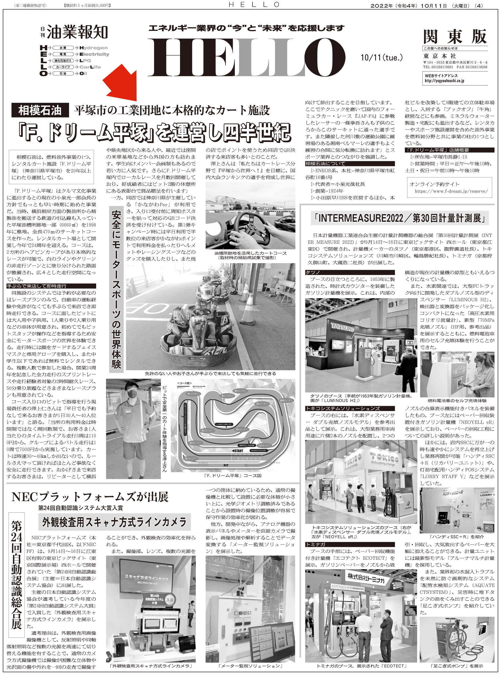 相模石油が平塚市に本格的カート施設「F.ドリーム平塚」を運営 ※ 画像をクリックすると大きなサイズでお読みいただけます ※ 過去の記事一覧 〒104-0033東京都中央区新川2-6-8 TEL: 03(3551)9201 FAX: 03(3551)9206