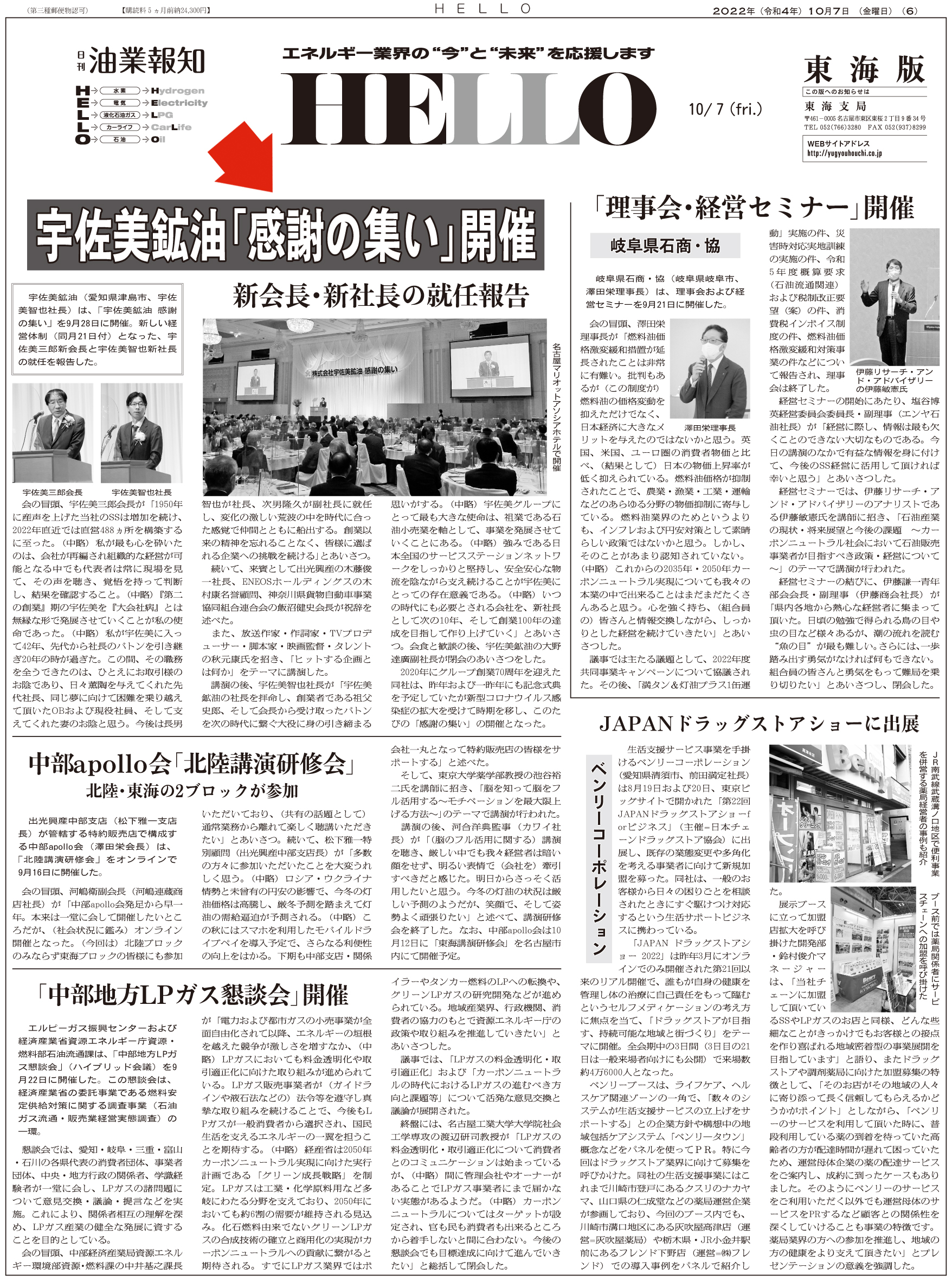 宇佐美鉱油「感謝の集い」 ※ 画像をクリックすると大きなサイズでお読みいただけます ※ 過去の記事一覧 〒104-0033東京都中央区新川2-6-8 TEL: 03(3551)9201 FAX: 03(3551)9206