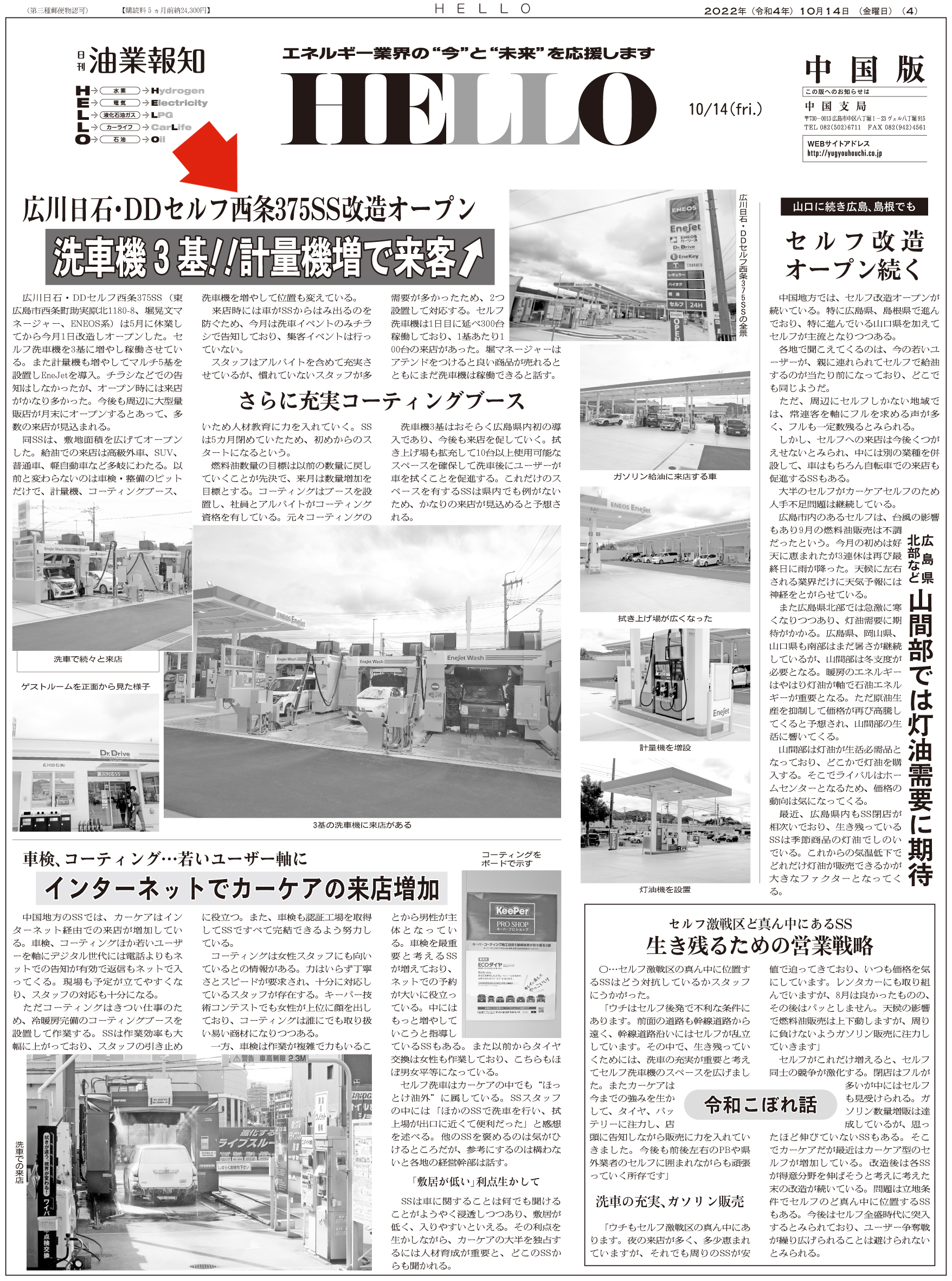東広島の広川日石・DDセルフ西条375SS 洗車機3基!計量機増で来客↑ ※ 画像をクリックすると大きなサイズでお読みいただけます ※ 過去の記事一覧 〒104-0033東京都中央区新川2-6-8 TEL: 03(3551)9201 FAX: 03(3551)9206