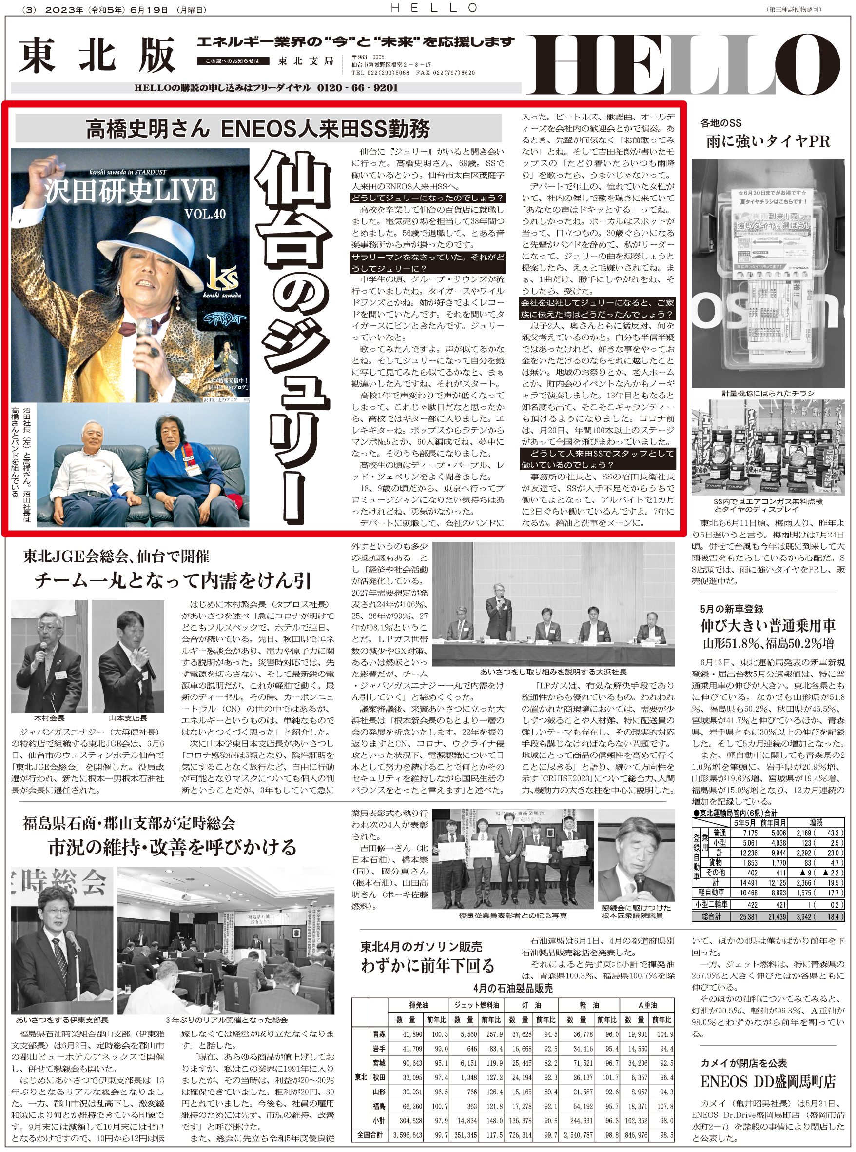 仙台・太白区のENEOS人来田SS 仙台のジュリー 高橋史明さん ※ 画像をクリックすると大きなサイズでお読みいただけます ※ 過去の記事一覧 〒104-0033東京都中央区新川2-6-8 TEL: 03(3551)9201 FAX: 03(3551)9206