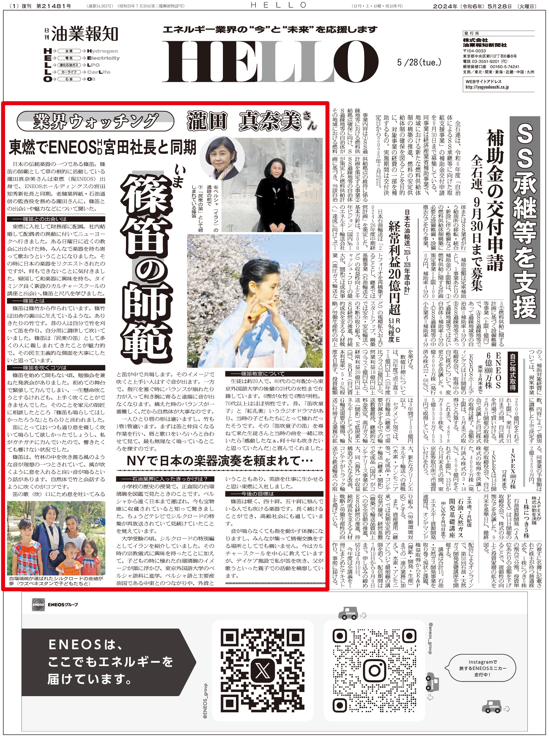 業界ウォッチング瀧田真奈美さん いま 篠笛の師範