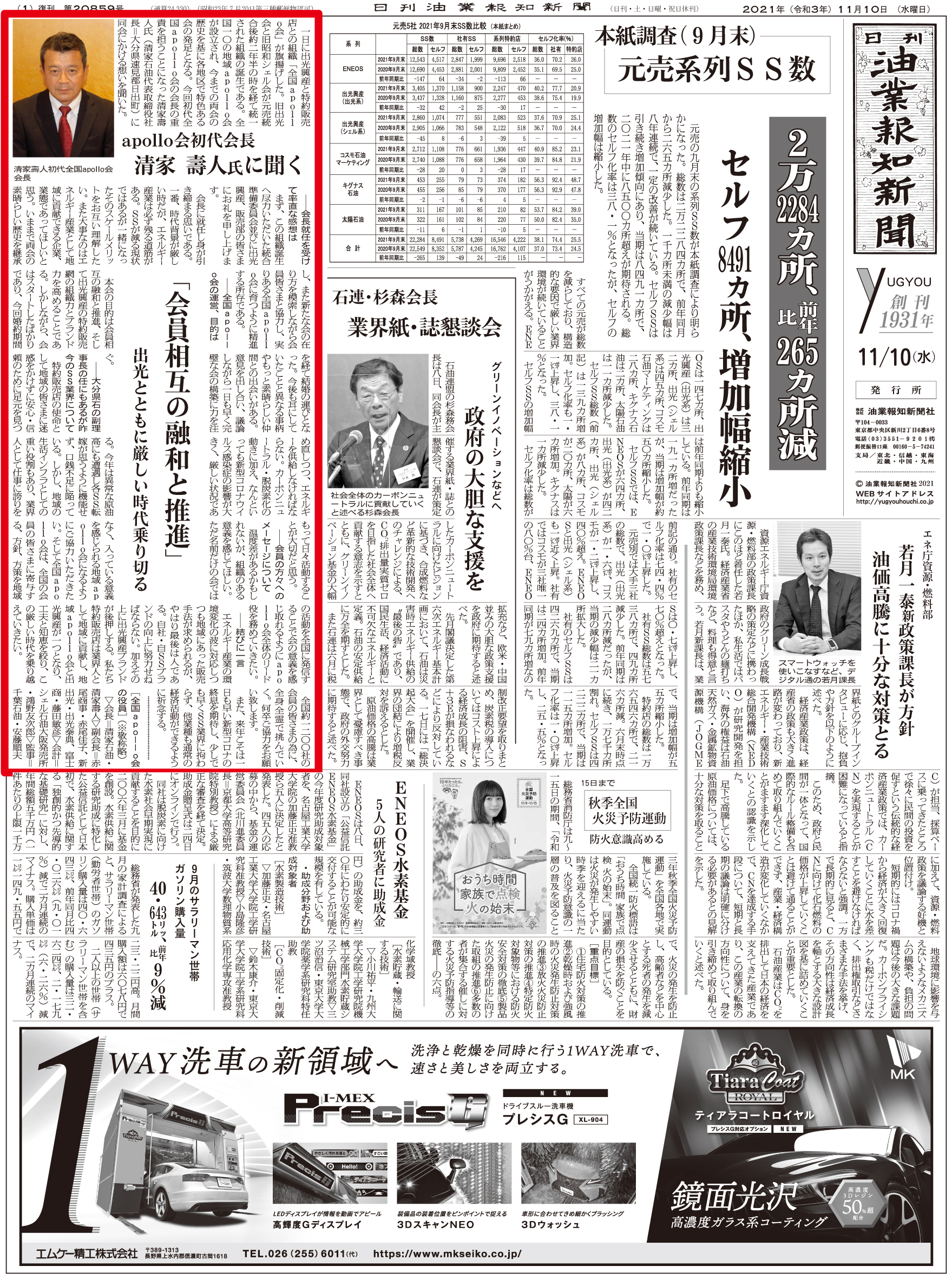 2021.11.10インタビュー apollo会初代会長 清家壽人さん「会員の融和と推進」 ※ 画像をクリックすると大きなサイズでお読みいただけます ※ 過去の記事一覧 〒104-0033東京都中央区新川2-6-8 TEL: 03(3551)9201 FAX: 03(3551)9206