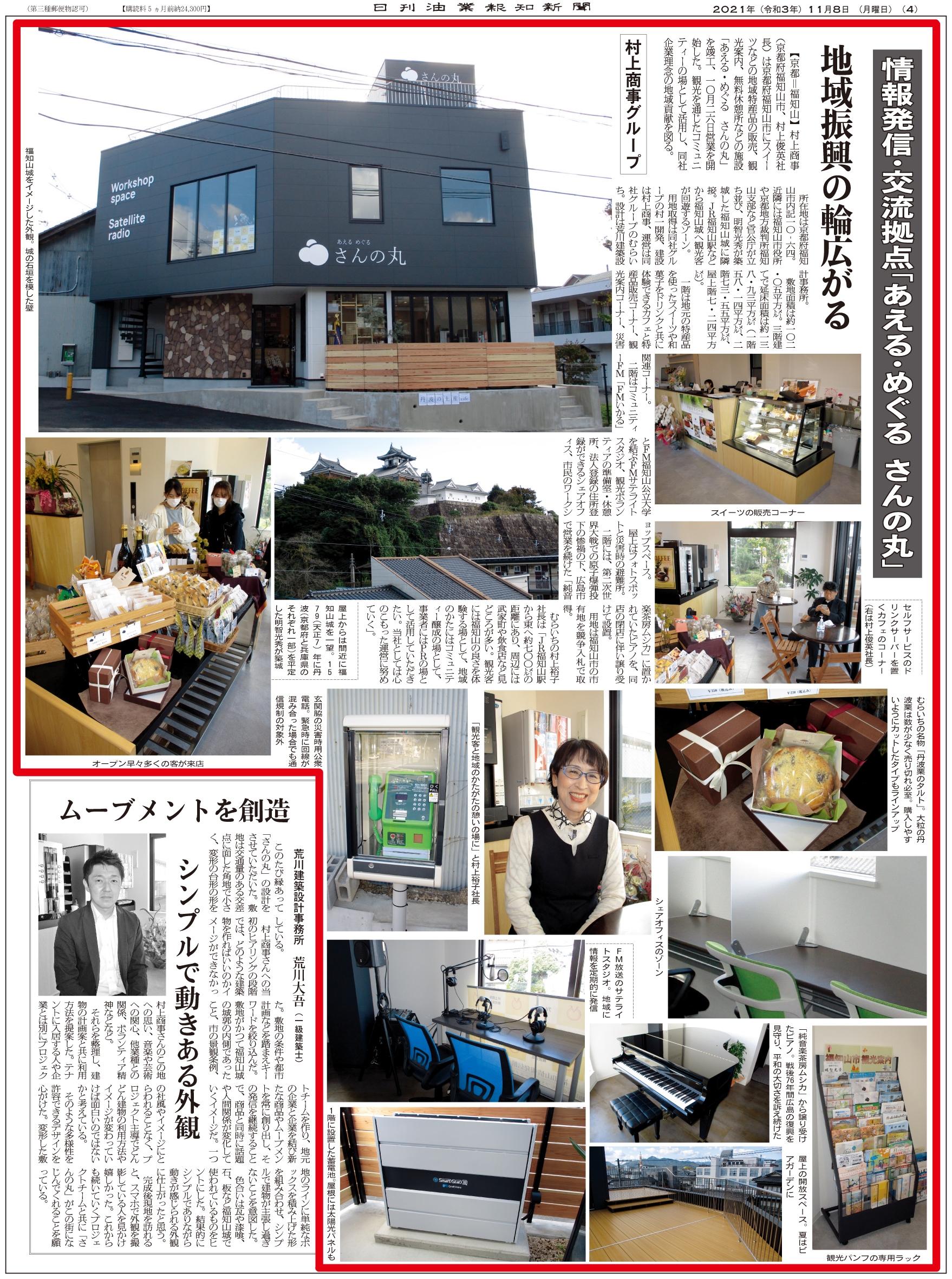 村上商事グループが京都・福知山に交流拠点「あえる・めぐる さんの丸」 ※ 画像をクリックすると大きなサイズでお読みいただけます ※ 過去の記事一覧 〒104-0033東京都中央区新川2-6-8 TEL: 03(3551)9201 FAX: 03(3551)9206