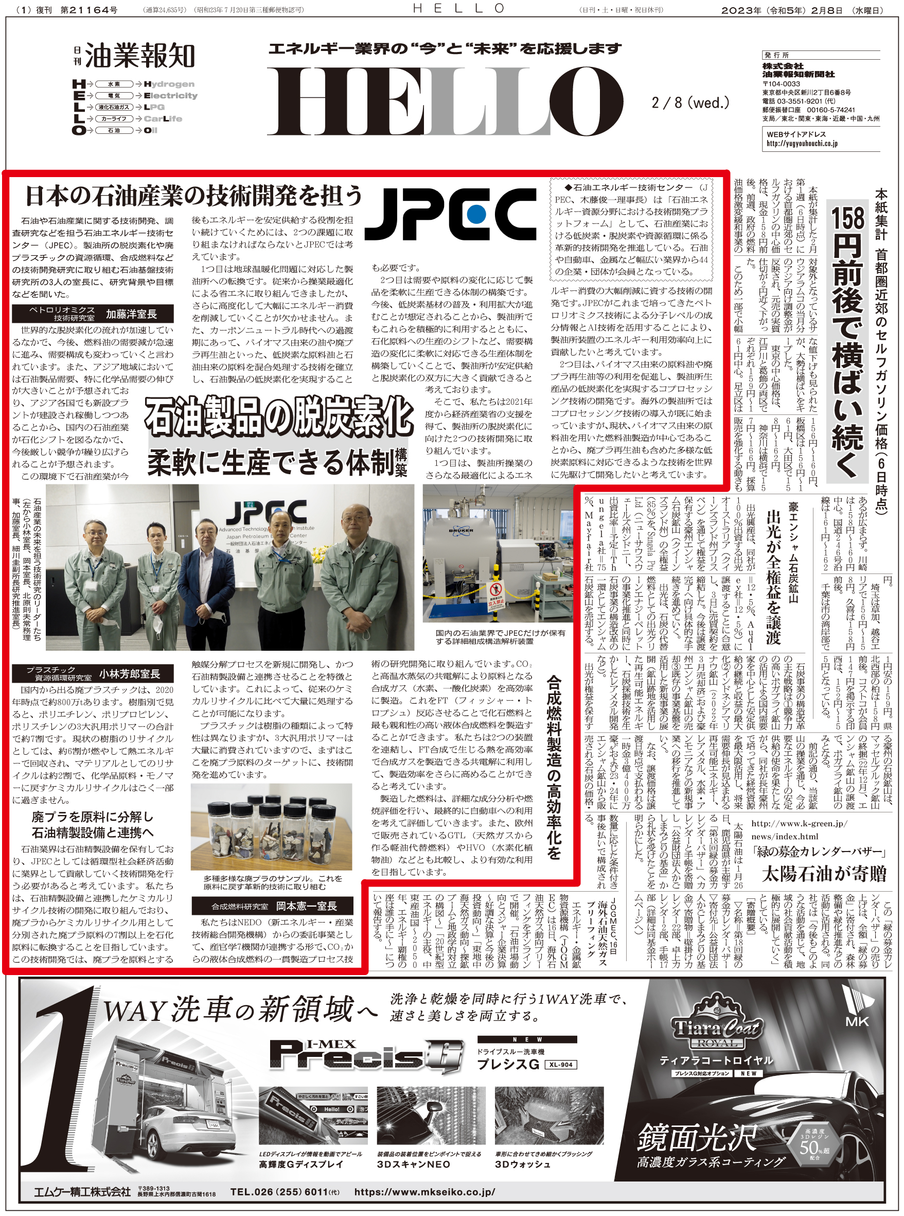 日本の石油産業の技術開発を担うJPEC 石油製品の脱炭素化 ※ 画像をクリックすると大きなサイズでお読みいただけます ※ 過去の記事一覧 〒104-0033東京都中央区新川2-6-8 TEL: 03(3551)9201 FAX: 03(3551)9206