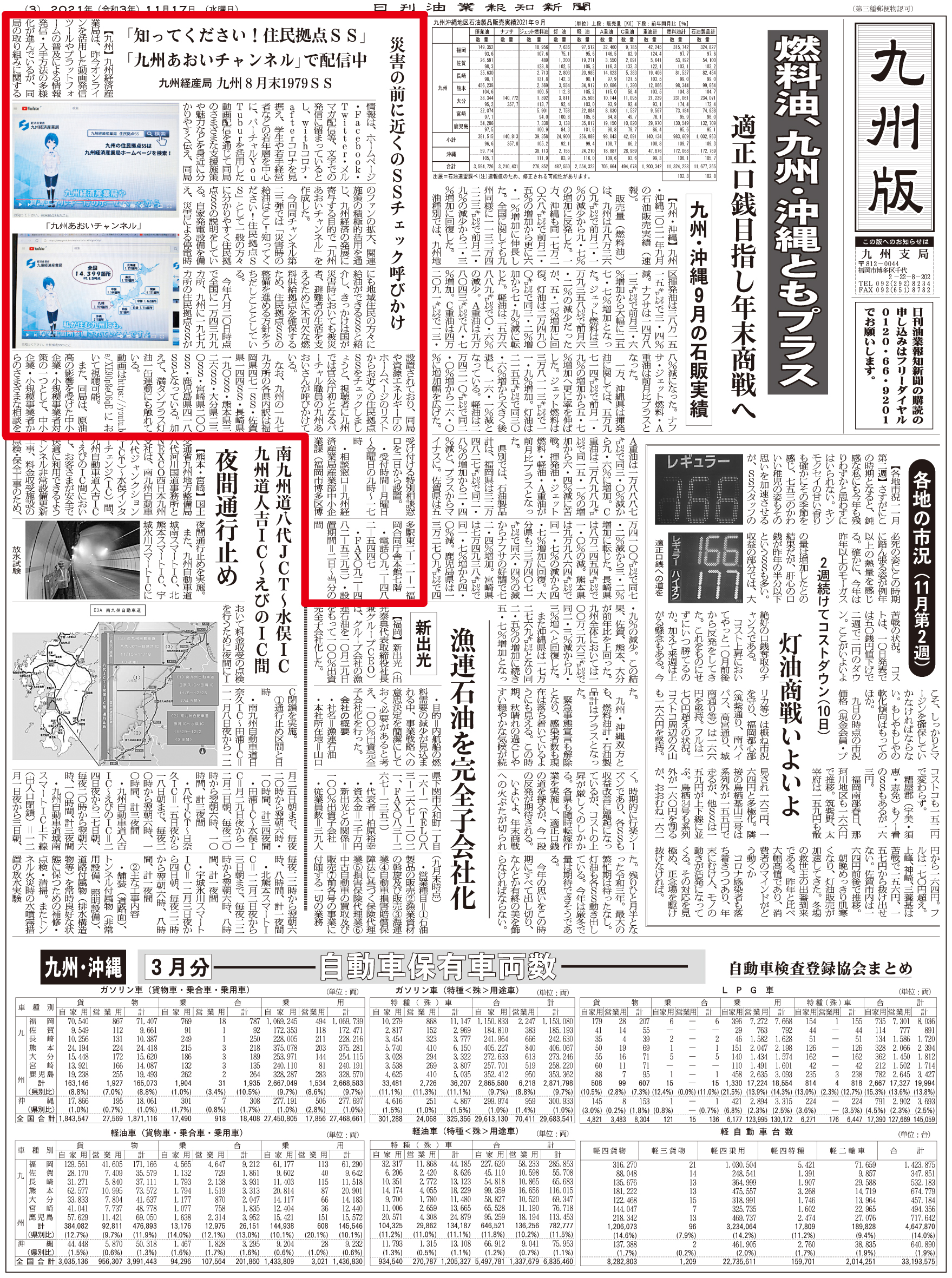 2021.11.17 九州あおいチャンネルが呼びかけ 災害時は住民拠点SS! ※ 画像をクリックすると大きなサイズでお読みいただけます ※ 過去の記事一覧 〒104-0033東京都中央区新川2-6-8 TEL: 03(3551)9201 FAX: 03(3551)9206