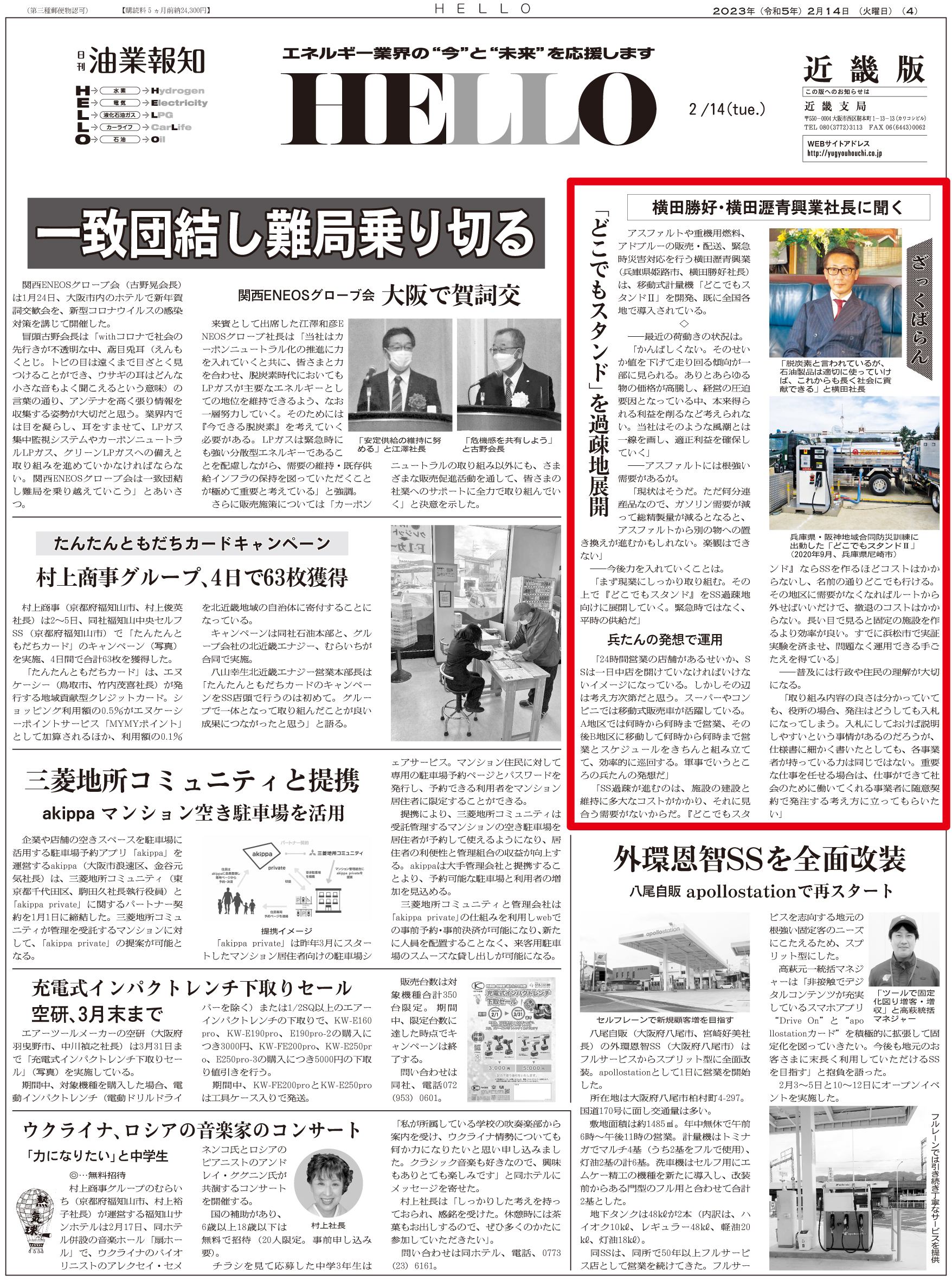 2023.2.14インタビュー 横田瀝青興業・横田勝好社長 過疎地に「どこでもスタンド」