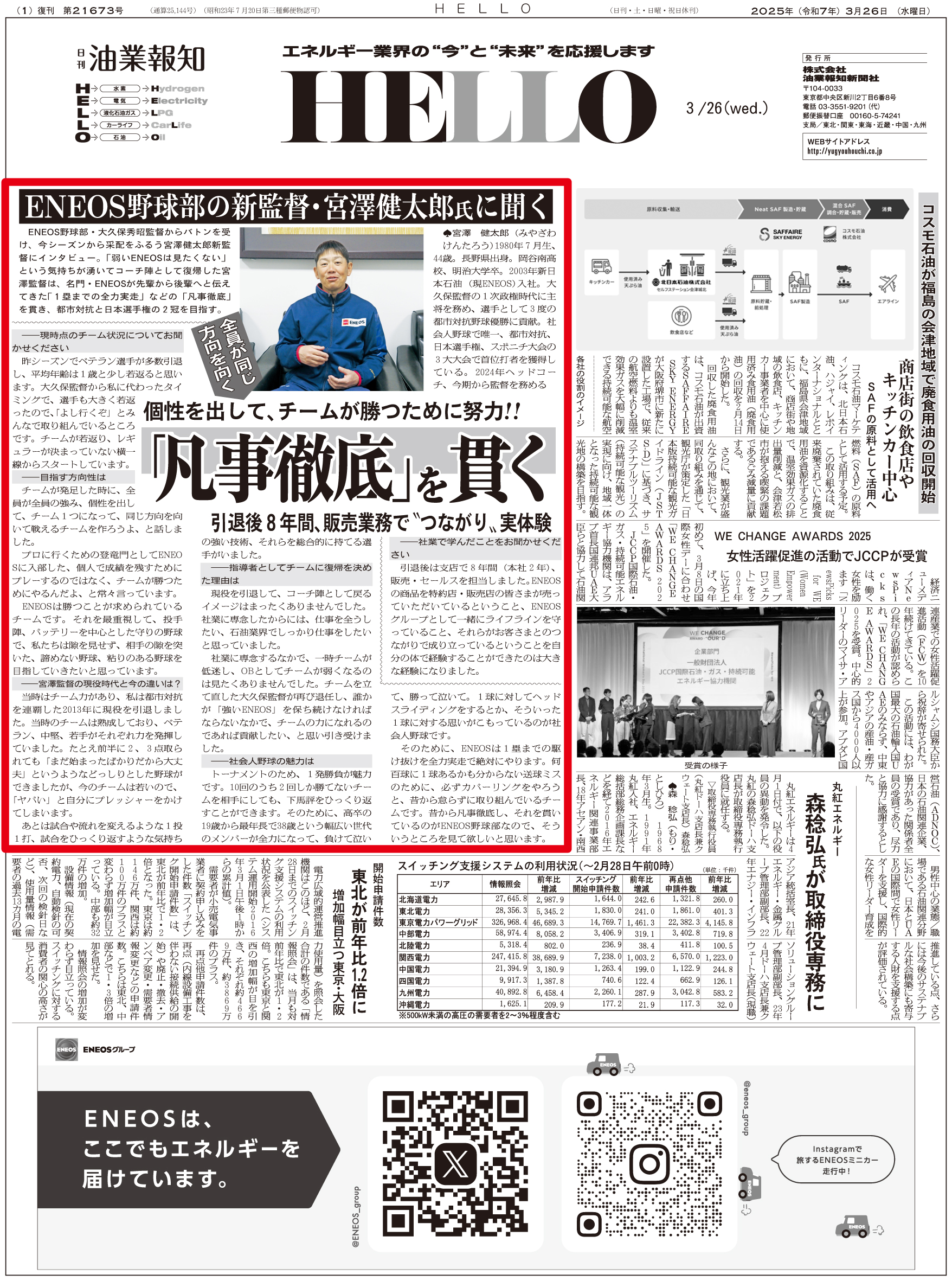 2025.3.26ENEOS野球部・宮澤監督インタビュー「凡事徹底」を貫く ※ 画像をクリックすると大きなサイズでお読みいただけます ※ 過去の記事一覧 〒104-0033東京都中央区新川2-6-8 TEL: 03(3551)9201 FAX: 03(3551)9206